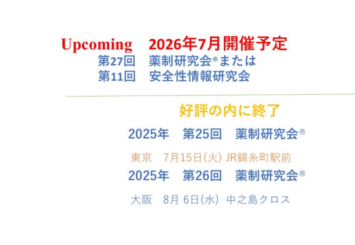 2025年第25回 26回 薬制研究会®は好評のうちに終了しました。